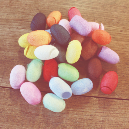 全ての繭は、ひとつひとつ手作業で染め上げています。