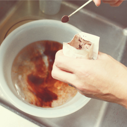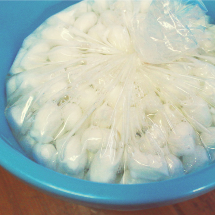 2 . 洗剤を薄めた水を入れ、空気を抜きながら浸します。