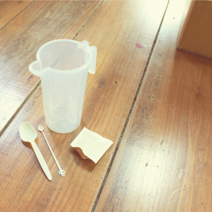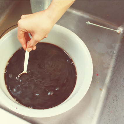 6 . 水の分量を量り、染料と混ぜ合わせます。